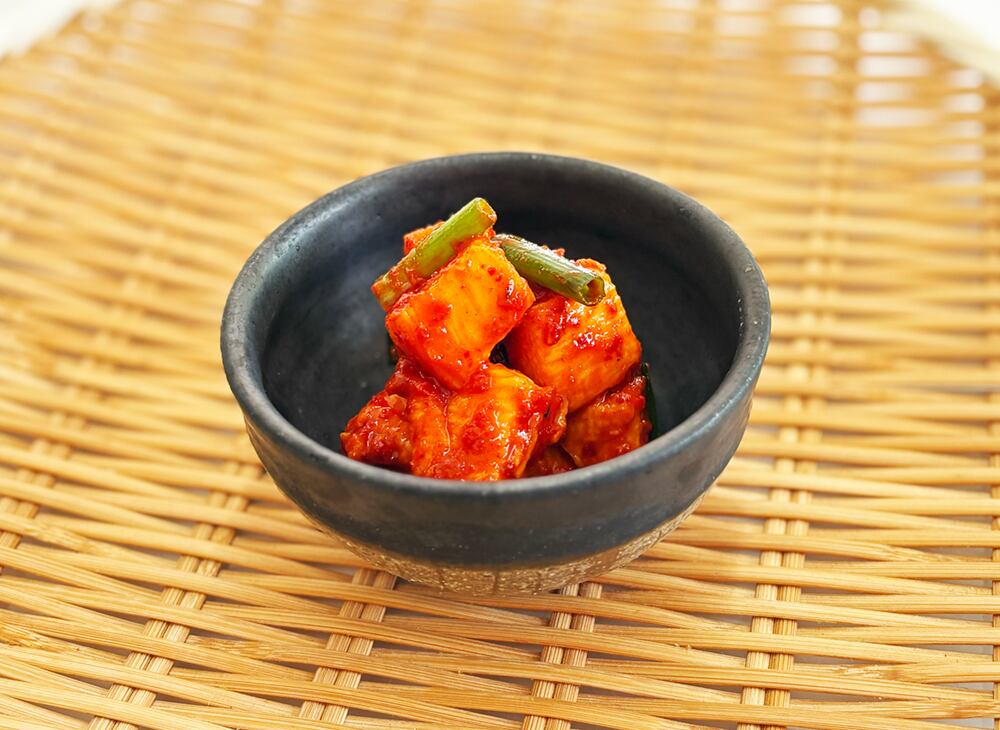 厳選された国産の山芋を使用した、シャキシャキとした独特の食感が楽しめるキムチです。甘味・旨味・辛味が絶妙に調和し、一口食べるごとに豊かな味わいが広がります。